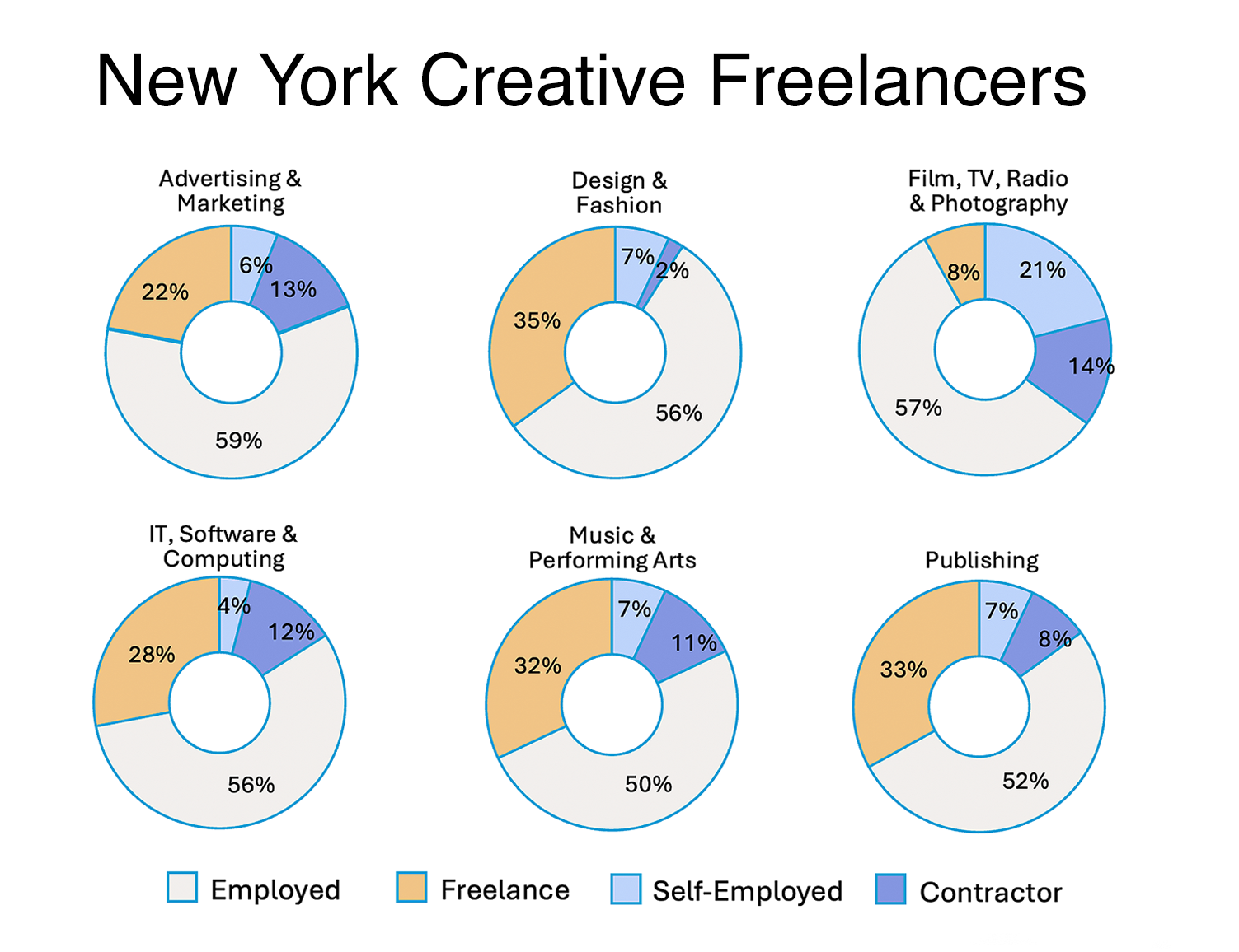 Plotting the influence of freelancers, self-employed & contractors and second jobbers across traditional and emerging industries.